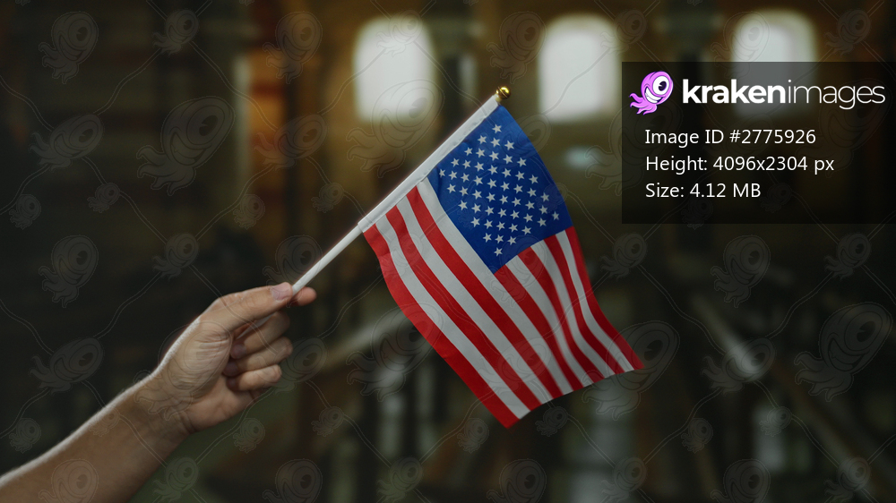 Caucasian man holding an american flag inside a church, symbolizing patriotism and faith in a serene indoor setting, with focus on the united states national emblem. - Kraken Images