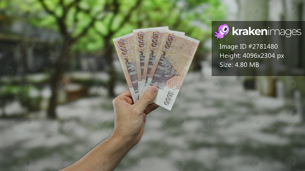 Caucasian man holds icelandic krona banknotes on a city street, highlighting financial themes within an urban outdoor setting, perfect for money and economy concepts. - Kraken Images