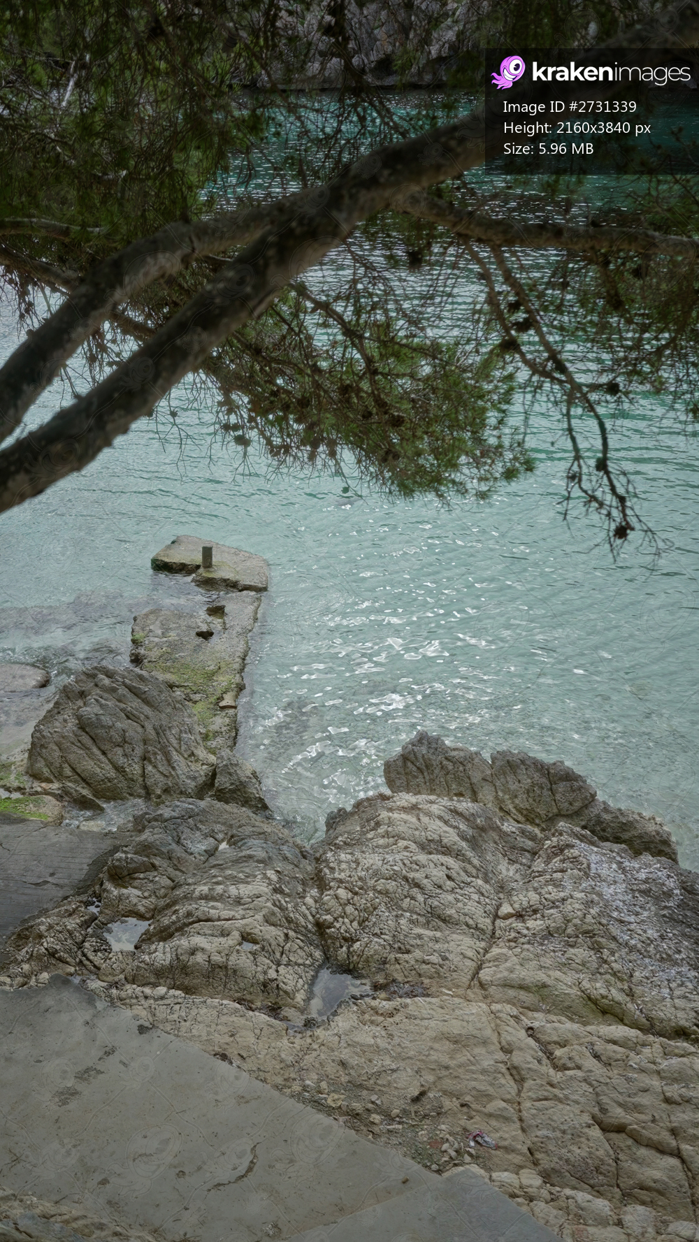 Coastal landscape in mallorca featuring turquoise water, rocky shore, and overhanging branches, capturing the serene beauty of a secluded beach setting. - Kraken Images