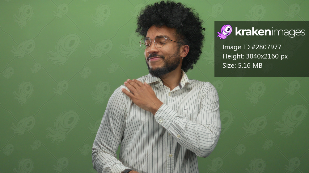 Confident african american man in striped shirt posing against isolated green background conveying assurance elegance and modern style.