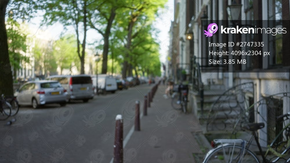 Defocused street view in a european city with blurred cars, bicycles, and trees, showcasing an outdoor cityscape with a calm, inviting ambiance on a sunny day. - Kraken Images