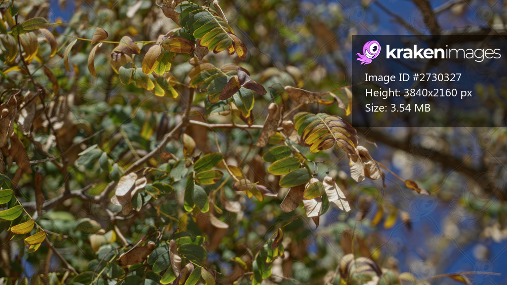 Dense foliage with yellow and brown hues under clear sky in sunny outdoor setting in torrevieja, spain