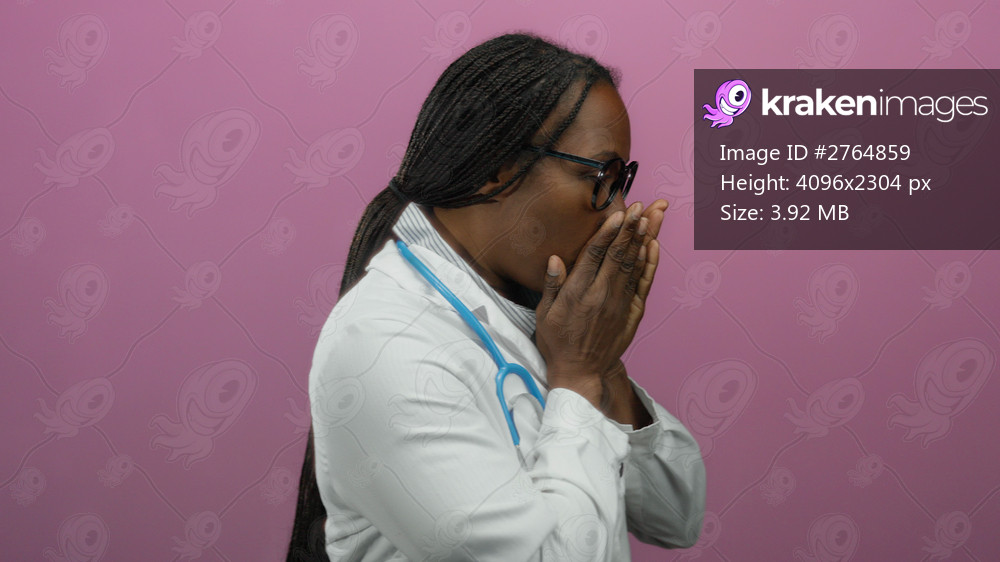 Doctor wearing glasses and stethoscope stands against a pink wall, looking focused and warm, highlighting the intersection of healthcare and modern aesthetics with a youthful presence. - Kraken Images