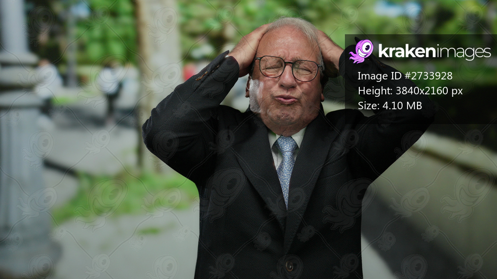 Elderly businessman in suit displays desperation on city street expressing stress in an outdoor environment highlighting senior emotions in public setting - Kraken Images