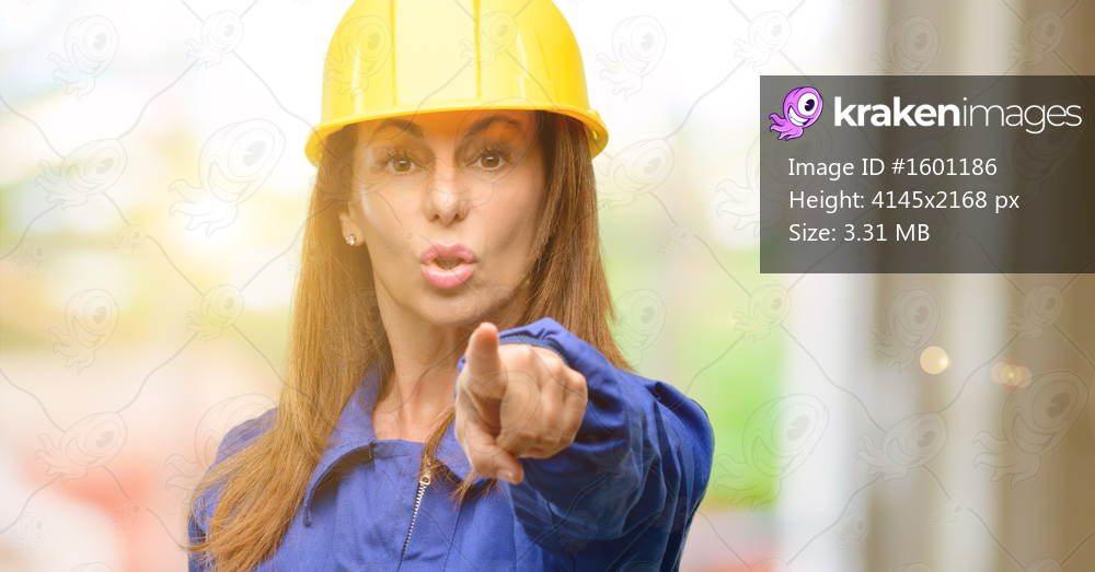 Engineer construction worker woman pointing to the front with finger