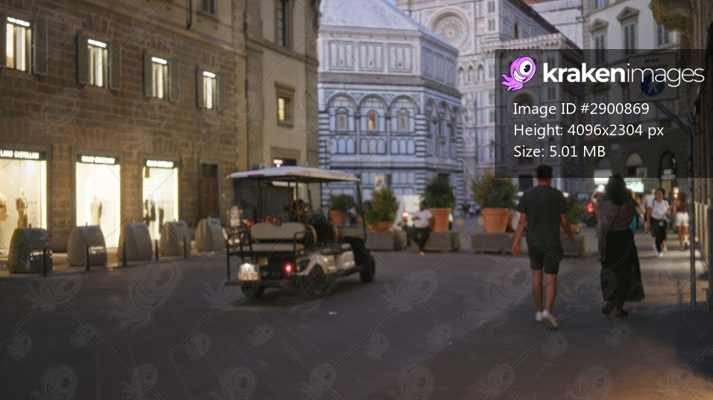 Evening defocused scene with shallow bokeh and soft blur over illuminated storefronts and cathedral facade in a plaza; background backplate copyspace calm. - Kraken Images