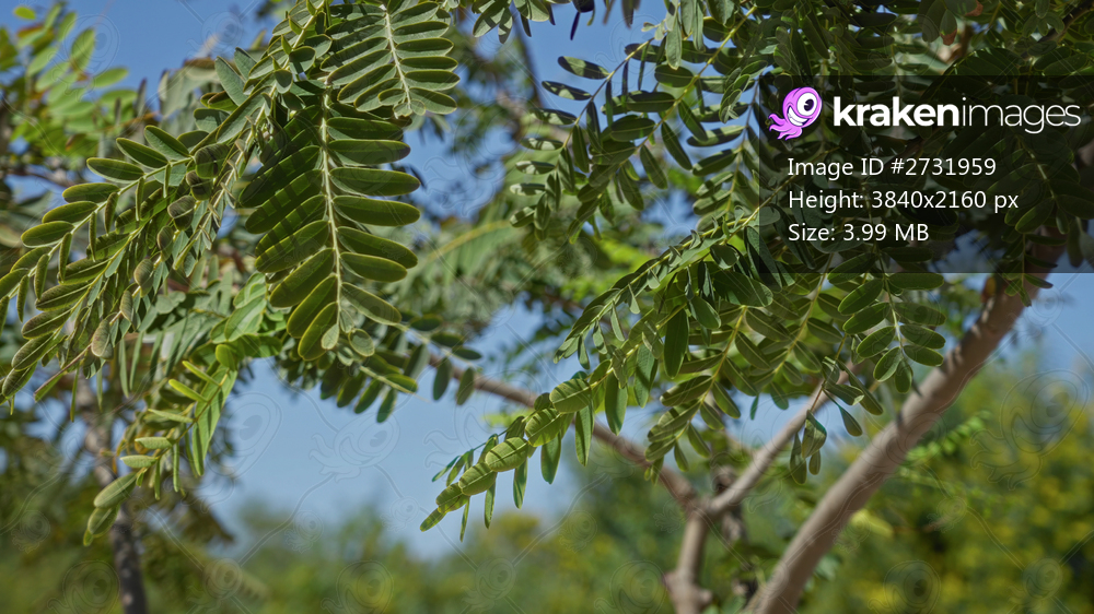 Green leaves of carob tree in sunny outdoor setting torrevieja spain showcasing mediterranean foliage against clear blue sky