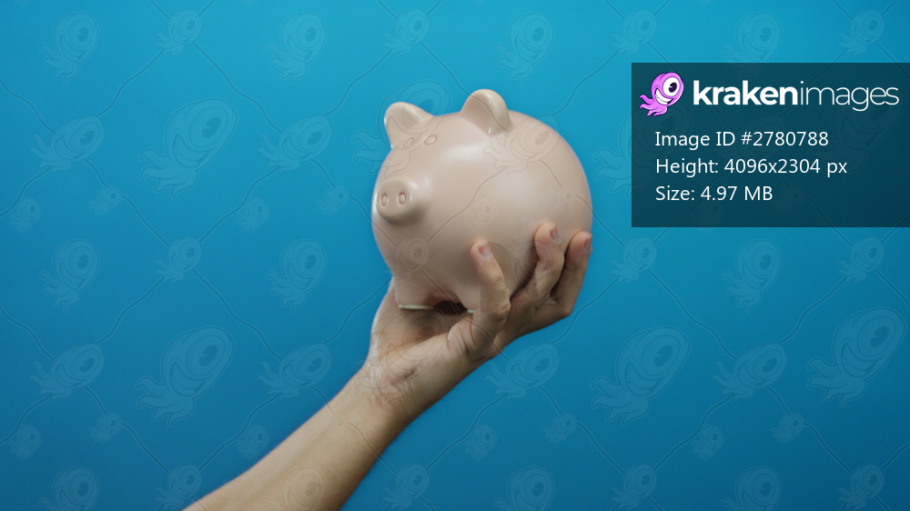Hand holding a piggy bank against a solid blue background, illustrating financial savings and personal investment.