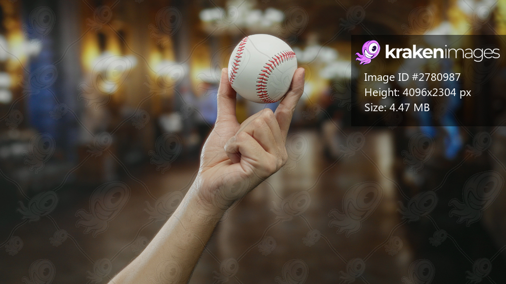 Hand holding baseball in ornate museum interior with blurred background, highlighting the intricate design and unique indoor atmosphere.