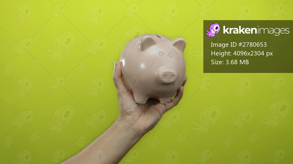 Hand holding piggy bank against vibrant yellow background symbolizing savings, finance, and investment concepts.