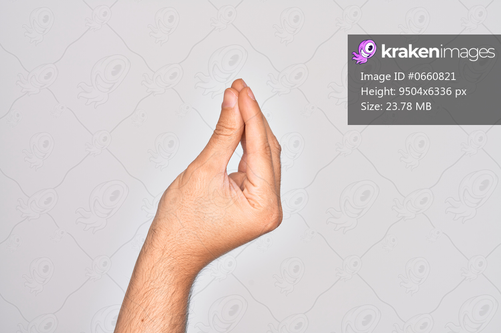 Hand of caucasian young man showing fingers over isolated white background doing Italian gesture with fingers together, communication gesture movement
