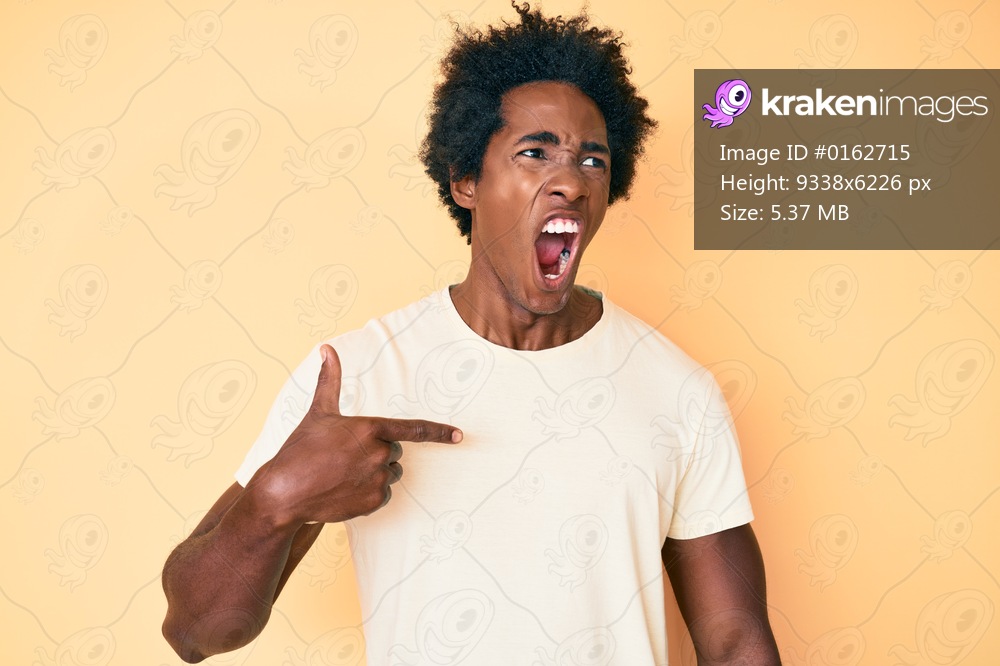 Handsome african american man with afro hair pointing with fingers to himself angry and mad screaming frustrated and furious, shouting with anger. rage and aggressive concept. - Kraken Images