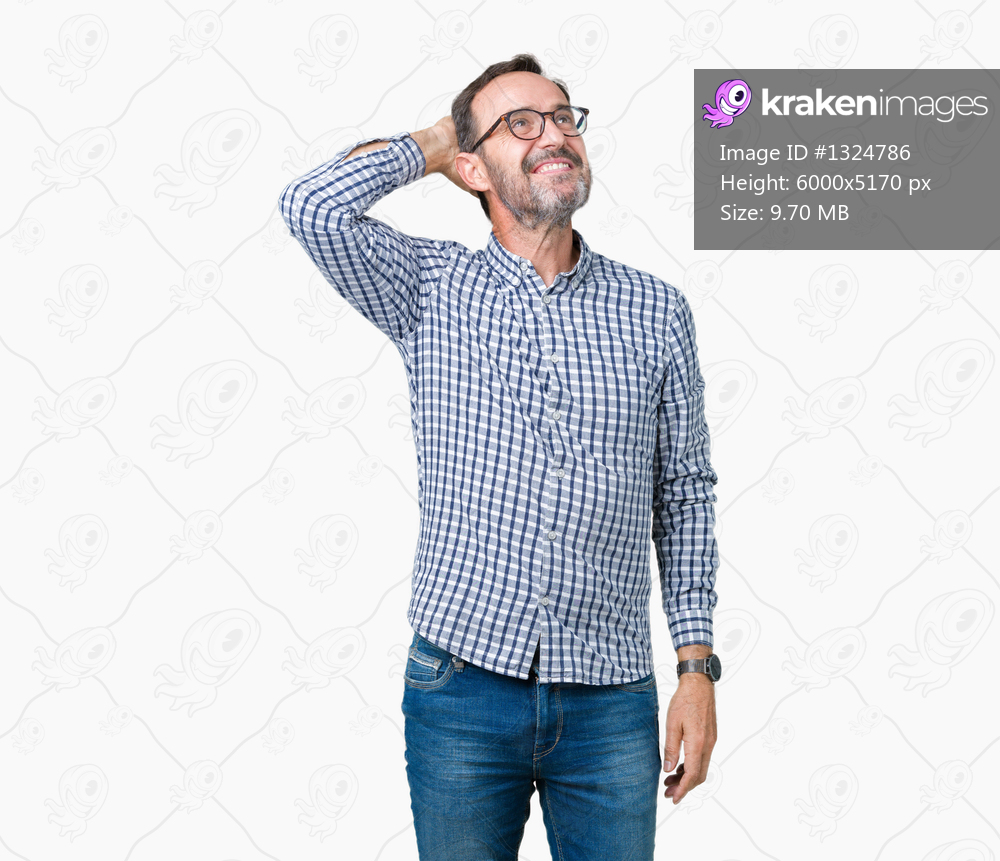 Handsome middle age elegant senior man wearing glasses over isolated background Smiling confident touching hair with hand up gesture, posing attractive - Kraken Images