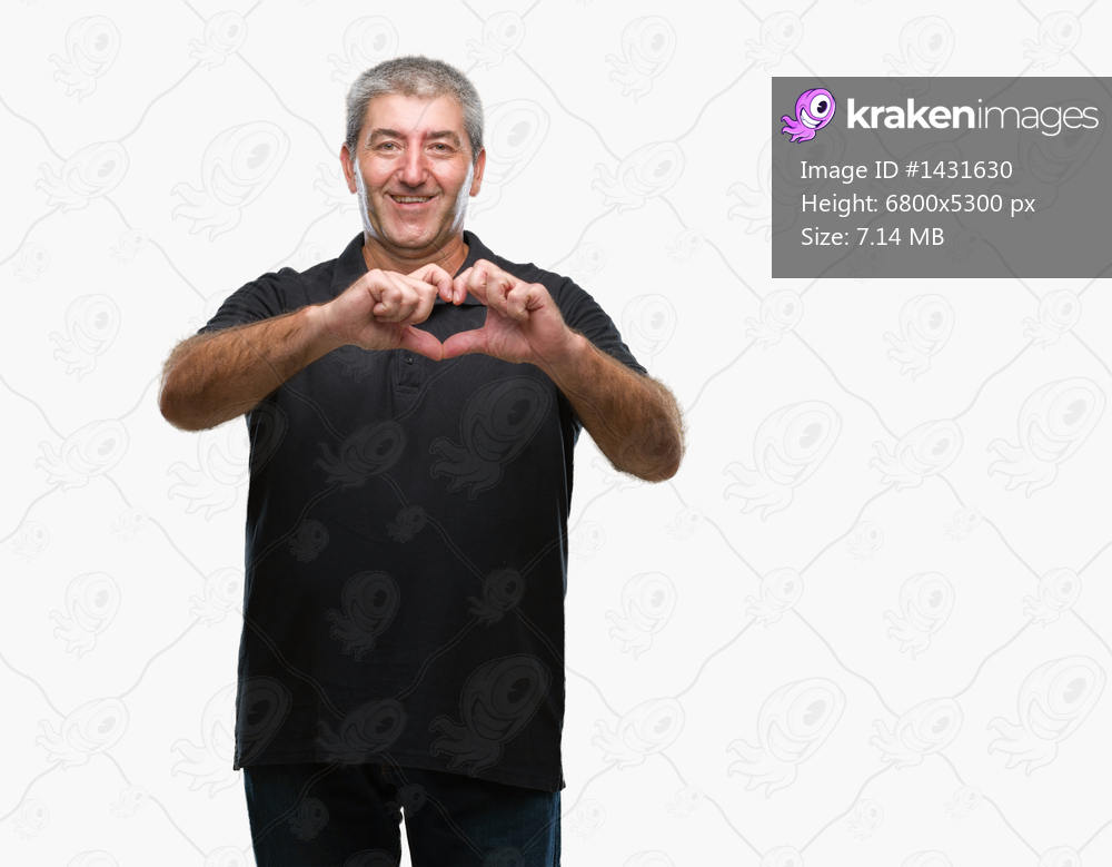 Handsome senior man over isolated background smiling in love showing heart symbol and shape with hands. Romantic concept.