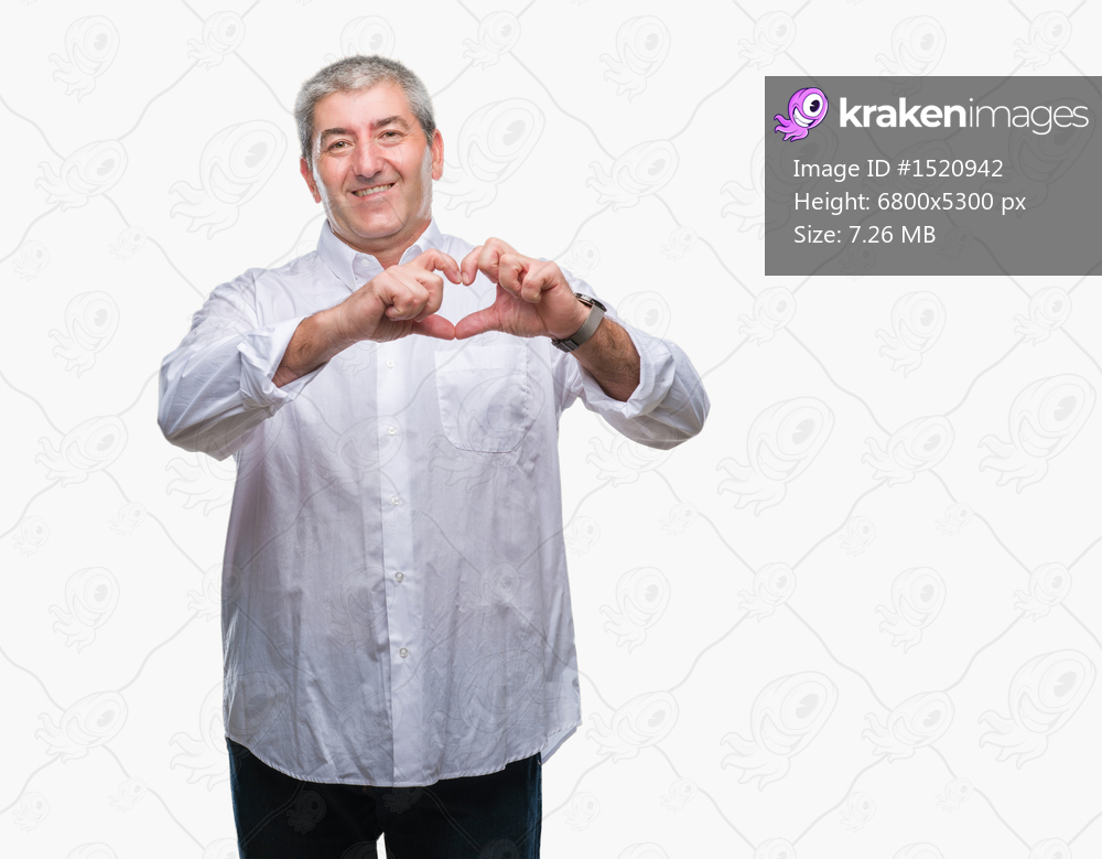 Handsome senior man over isolated background smiling in love showing heart symbol and shape with hands. Romantic concept.