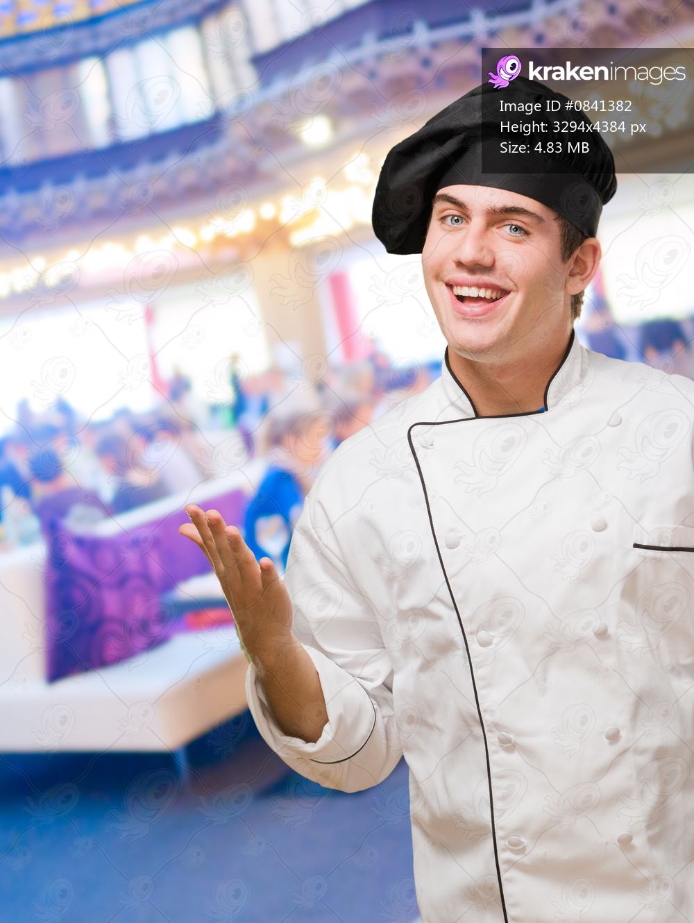 Happy Young Chef Gesturing at a restaurant