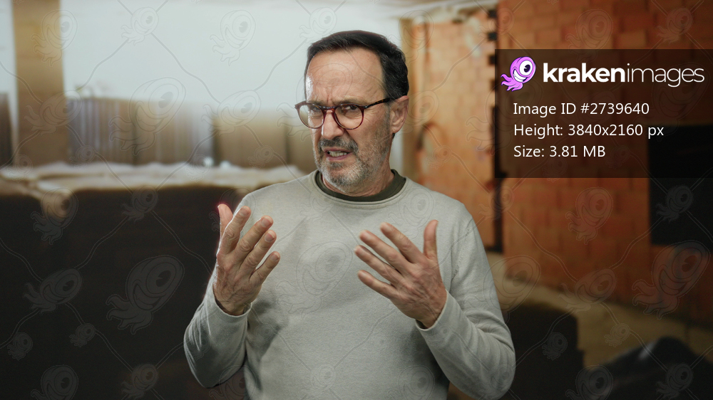 Hispanic man expressing frustration at a construction site indoors with bare brick walls, conveying a sense of displeasure and confusion.