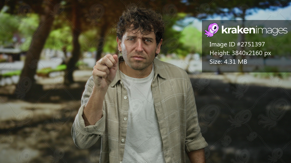 Hispanic man in a park standing thoughtfully, surrounded by lush greenery and sunlight filtering through trees, dressed casually in neutral tones.