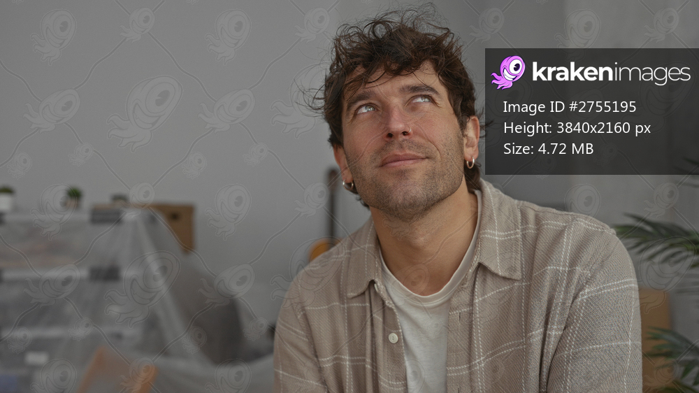 Hispanic man smiling inside a new home capturing a moment of happiness and anticipation within the cozy and minimalistic room setting.