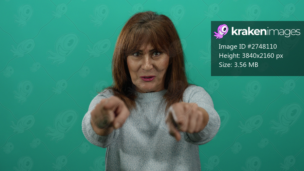 Hispanic senior woman with long hair makes welcoming gestures against an isolated green background, wearing a casual sweater with an inviting expression conveying warmth and friendliness. - Kraken Images