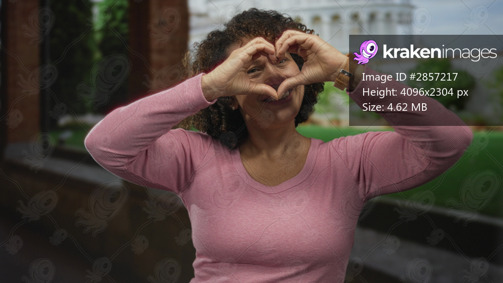 Hispanic woman in pink sweater forms heart shape with hands at building near pisa tower outdoors; love romance.