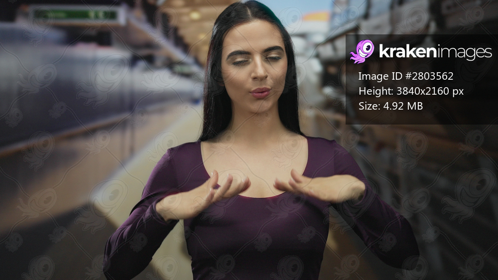 Hispanic woman on cruise wearing purple engaging in relaxation outdoors, showcasing calmness and confidence with her eyes closed and hands in a meditative gesture. - Kraken Images