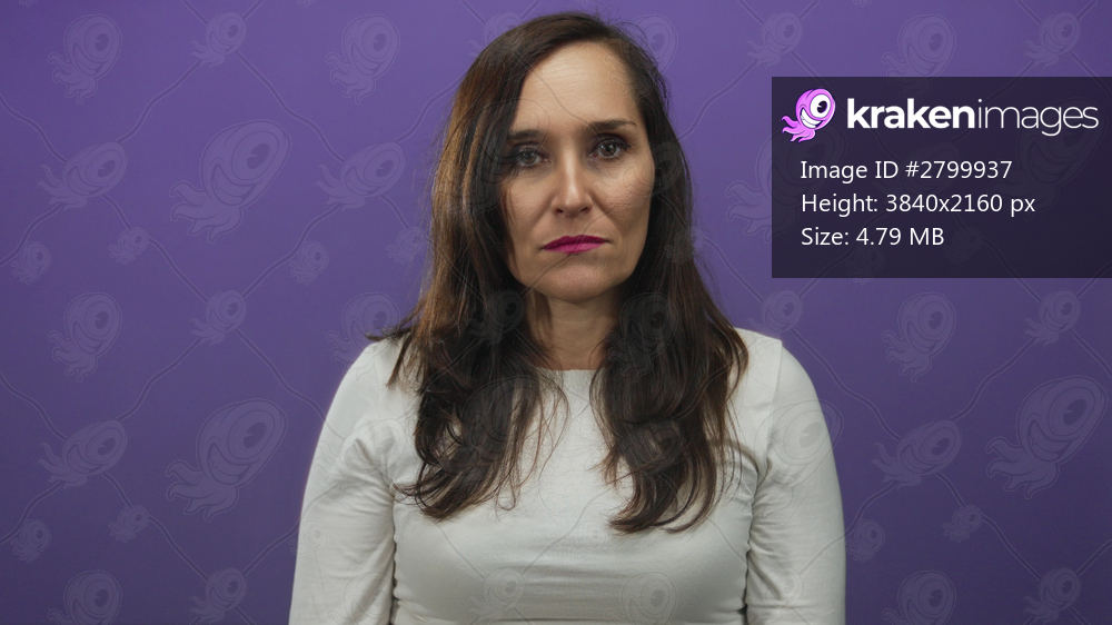 Hispanic woman smiling against a vibrant purple wall wearing white shirt, captured in an expressive moment full of emotion and personality with isolated vivid background - Kraken Images