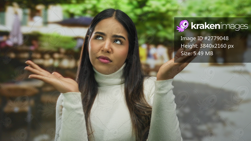 Latina woman pondering in a lush green park under the sun, creating a thoughtful and serene outdoor atmosphere, suitable for themes of nature and contemplation. - Kraken Images