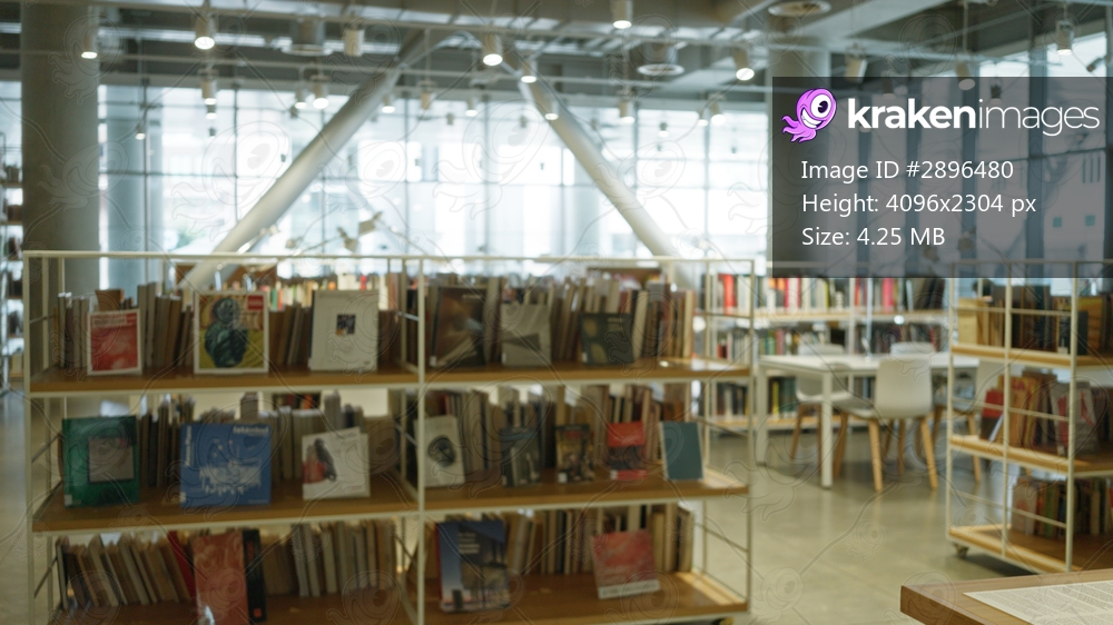 Library shelves and reading tables rendered in soft bokeh interior; background backdrop copyspace calm.