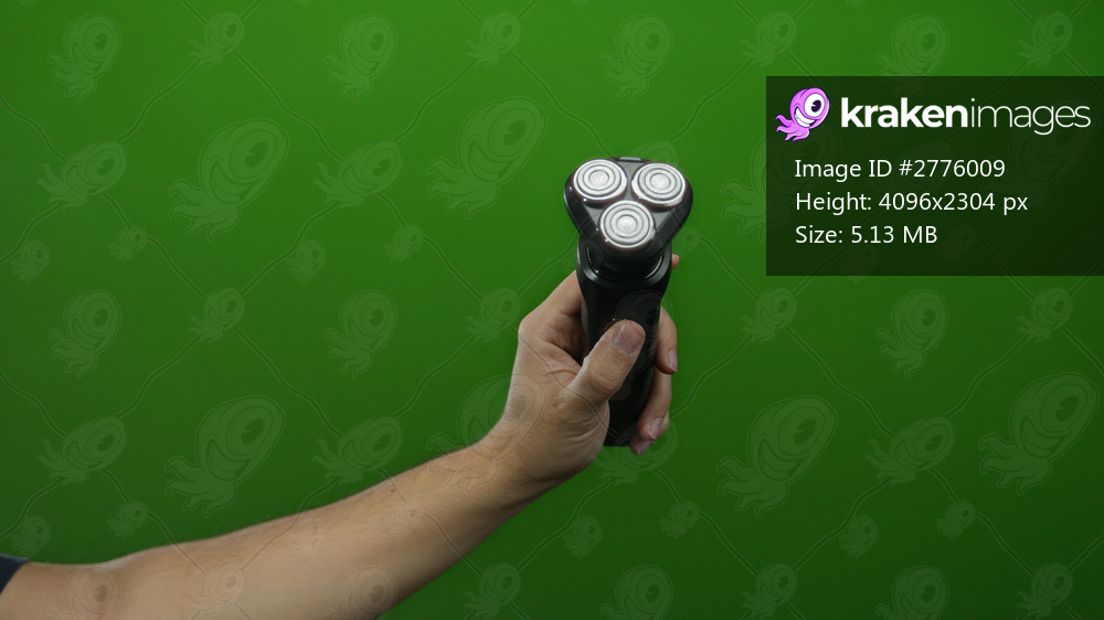 Male hand holding a black electric shaver against a vivid green background, emphasizing the isolated grooming tool ideal for personal hygiene and grooming concepts. - Kraken Images