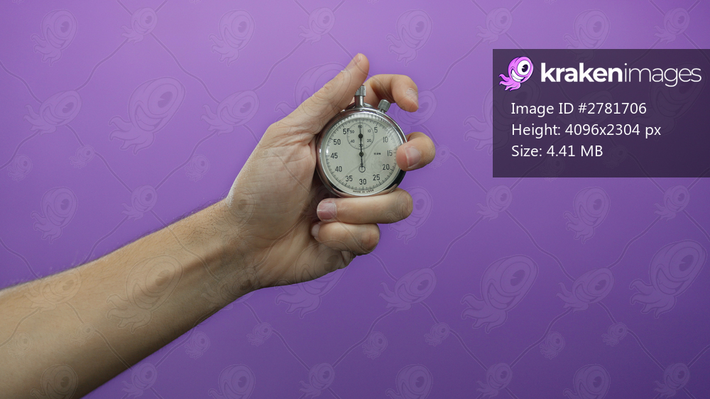 Male hand holding stopwatch against purple background, focusing on time, precision, and measurement in an isolated setting suggesting punctuality and speed. - Kraken Images