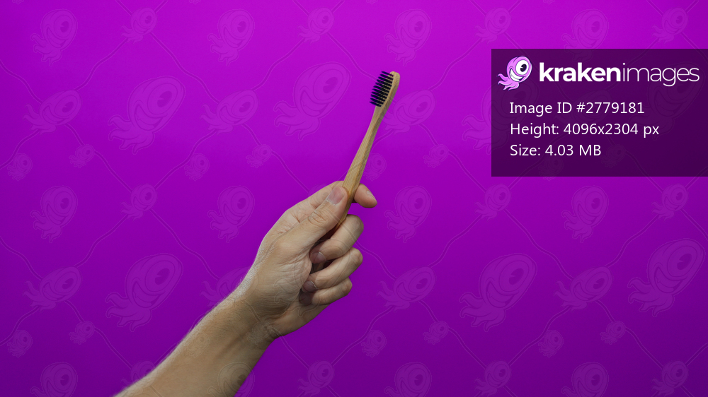 Male hand holds a bamboo toothbrush against an isolated vibrant pink background, highlighting eco-friendly dental care products in a minimalist setting. - Kraken Images
