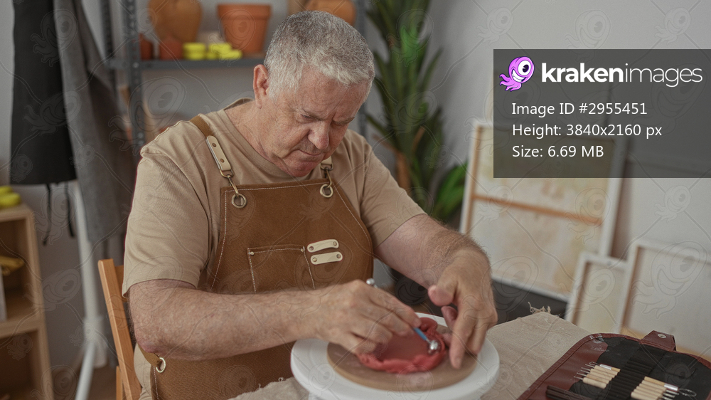 Man artisan shaping clay with hands on pottery wheel in studio; craftsmanship concentration patience.