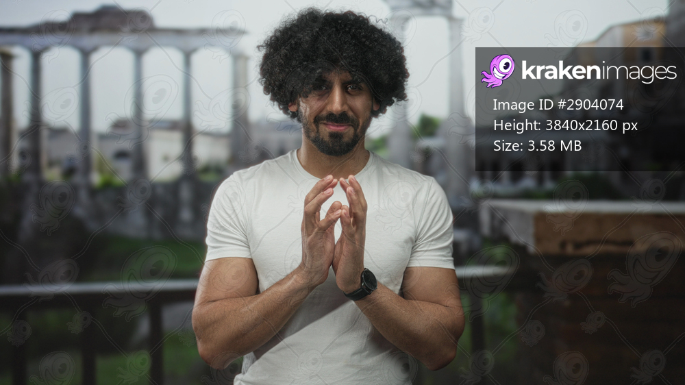 Man with clasped hands and visible watch standing by a historic building in st peter square at the vatican; quiet contemplation calm.