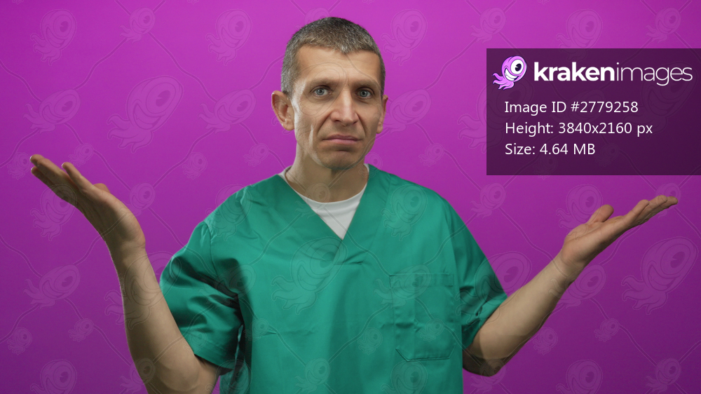 Man doctor in green uniform poses against a vivid pink wall, conveying confidence and professionalism in a healthcare setting.