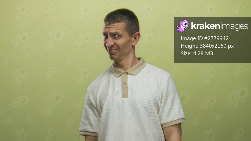 Man expressing confusion standing against plain yellow background in casual white shirt with short hair and neutral expression suggesting skepticism or uncertainty - Kraken Images