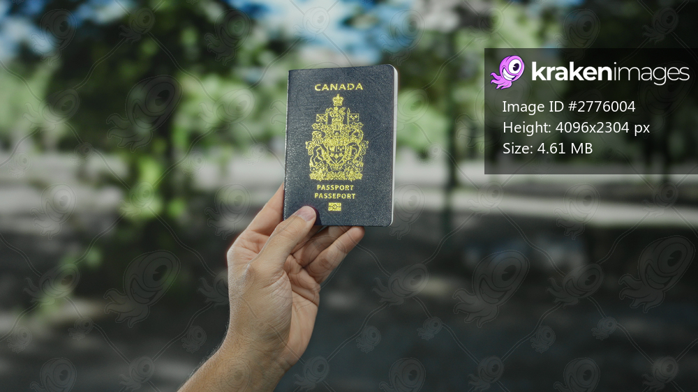Man holding a canadian passport outdoors, highlighting travel in a park setting with a focus on freedom and identity.