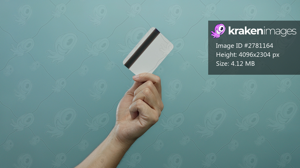 Man holding a credit card in hand against a blue background, symbolizing finance, payment, and technology in an isolated, modern setting.