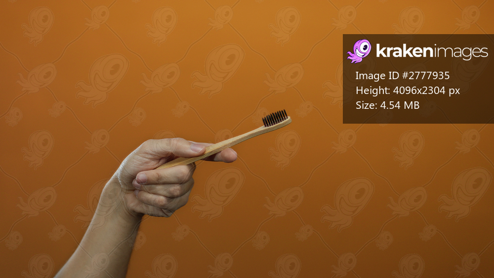 Man holding bamboo toothbrush against vibrant orange background showcasing eco-friendly lifestyle choice and sustainability emphasis.