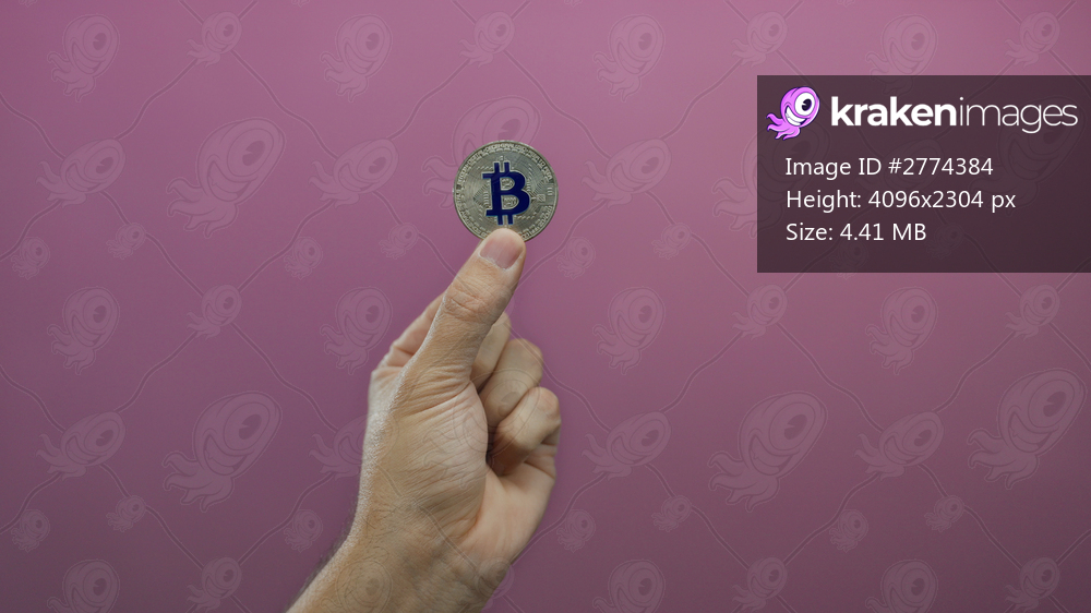 Man holding bitcoin against pink background, showcasing cryptocurrency in an isolated colorful setting.
