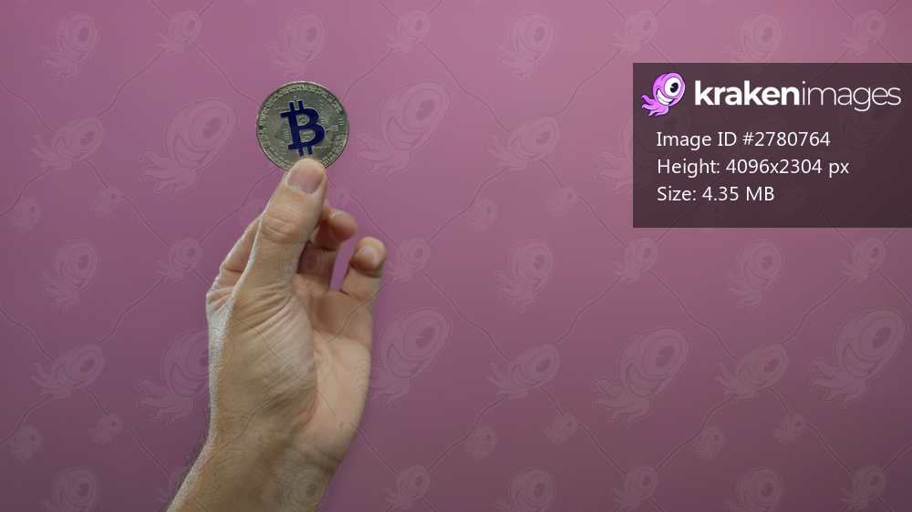 Man holding bitcoin against pink background, showcasing cryptocurrency in an isolated colorful setting.