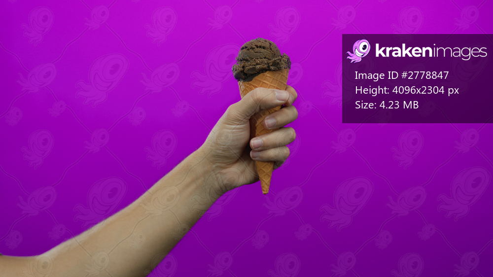 Man holding chocolate ice cream cone against a vibrant pink background, showcasing a casual and lively scene with a colorful contrast highlighting the delicious treat. - Kraken Images