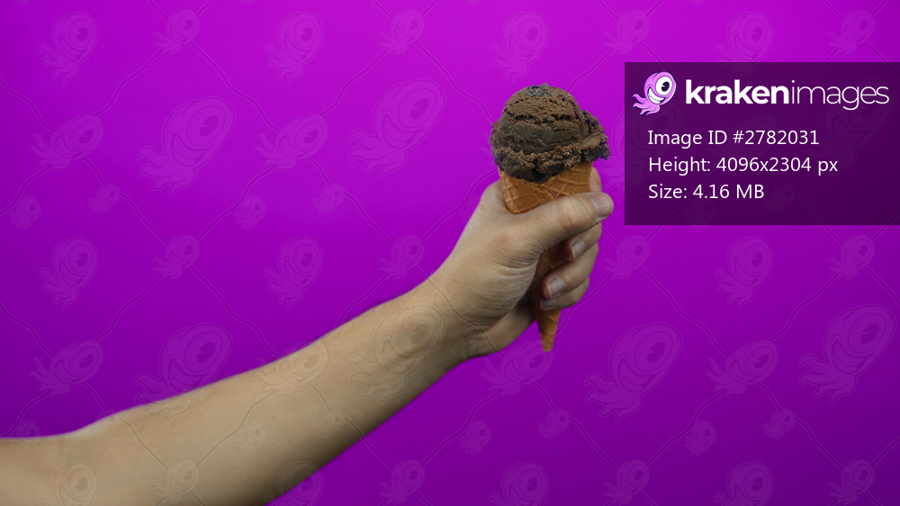 Man holding chocolate ice cream cone against a vibrant pink background, showcasing a casual and lively scene with a colorful contrast highlighting the delicious treat. - Kraken Images