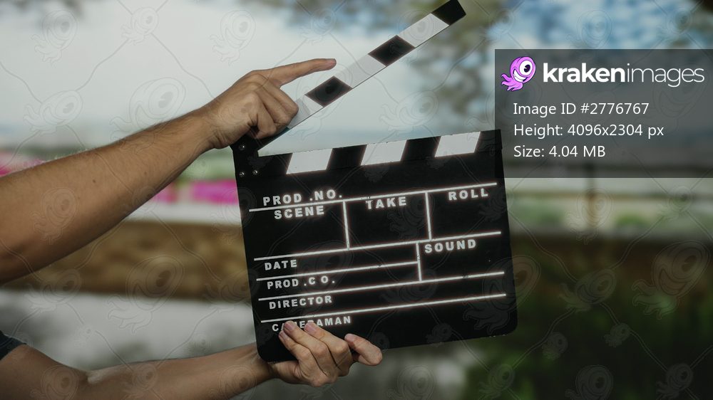 Man holding clapperboard film production outdoor street setting with blurred background capture cinematic action inspired creative scene making city sight. - Kraken Images