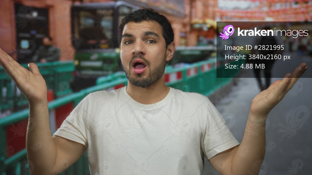 Man holding head with both hands and mouth agape on a sunny daytime busy urban street environment; astonishment.