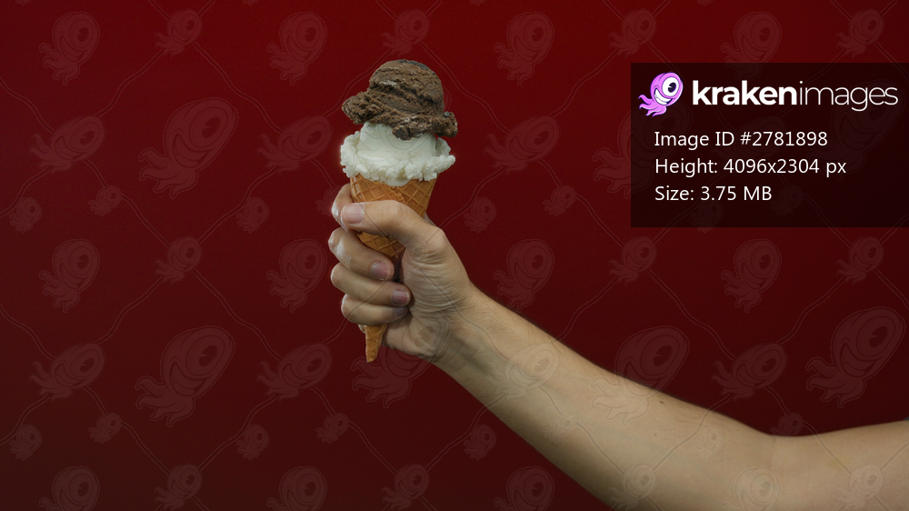 Man holding ice cream cone against vibrant red background highlighting contrast and texture for an isolated focus on the treat and hand.
