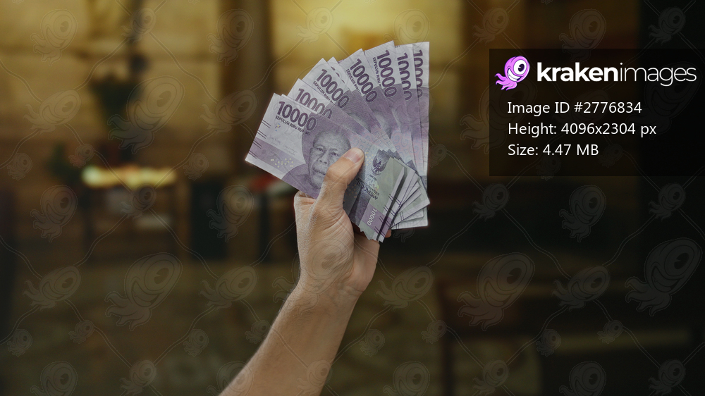 Man holding indonesian rupiah banknotes indoors, with a church background, displaying currency in a religious setting, signifying financial themes in a spiritual space. - Kraken Images