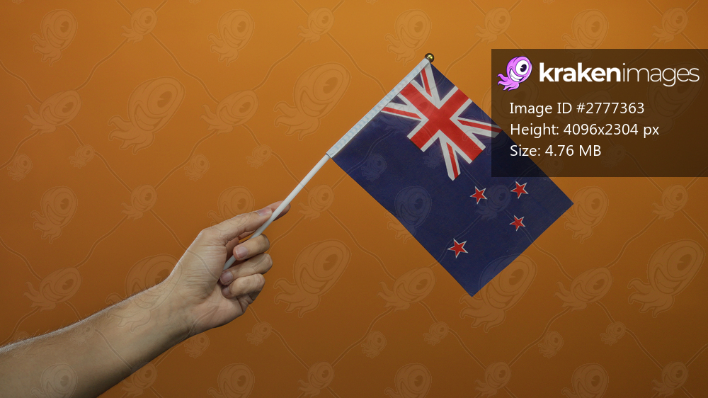 Man holding new zealand flag against orange background, showcasing national pride and cultural identity with vibrant color contrast and isolated male hand. - Kraken Images