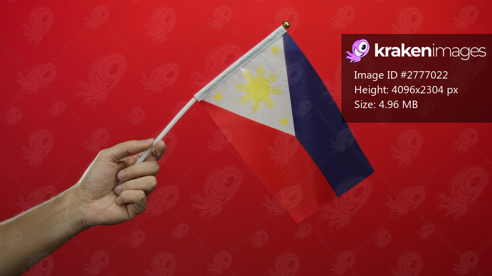 Man holding philippine flag against a red background with isolated focus showcasing patriotism and national pride.