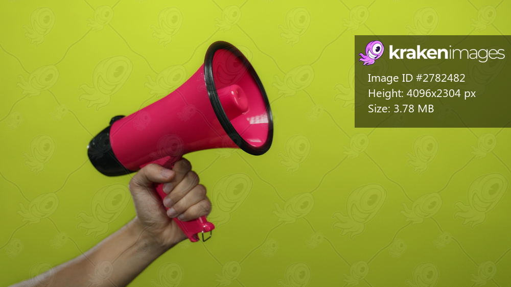 Man holding pink megaphone against bright yellow background implying communication, announcement, and expression emphasized by vibrant color contrast and simplicity. - Kraken Images